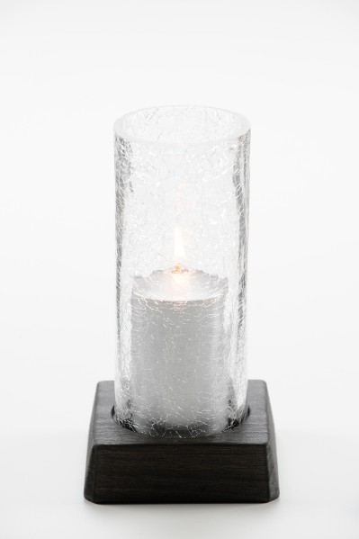 Neliönmallinen alusta mustaa puuta, värisuojus mattahopea, suojalasi jää. Lyhdyn korkeus 17 cm.