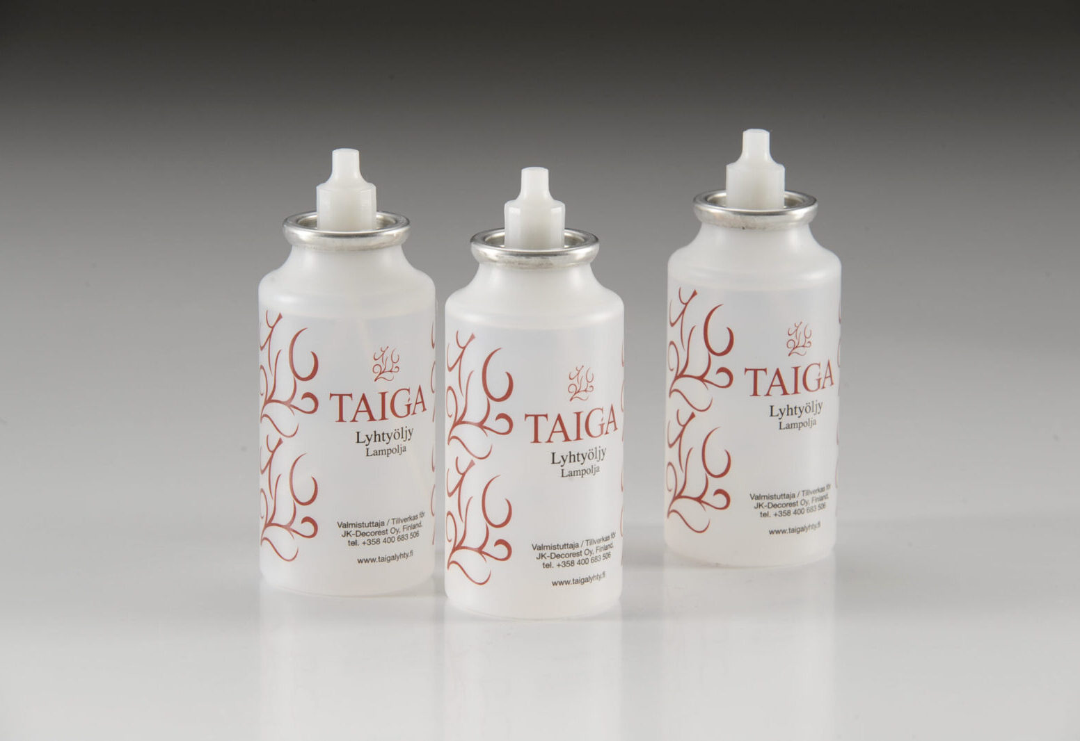Taigalyhdyn puhdas kasviöljy luo liekin joka ei savua eikä nokea ympäristöään. Yhdellä säiliöllä Taigalyhty palaa noin 35-40 tuntia. Sopii kaikkiin Taigalyhtyihin.