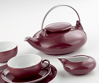 21-osainen tyylikäs teesetti: teekannu 1l, sokeriastia 0,20 l, maito/kerma-astia 0,15 l, 6 teekuppia 0,20 l, 6 aluslautasta 14 cm ja 6 leivoslautasta 20 cm.