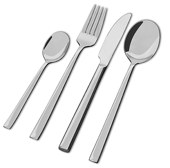 Aterimet ruostumatonta terästä. Lahjapakkaus. Sisältö: 6 kpl kahvilusikka, 6 kpl ruokalusikka, 6 kpl ruokahaarukka, 6 kpl ruokaveitsi.
