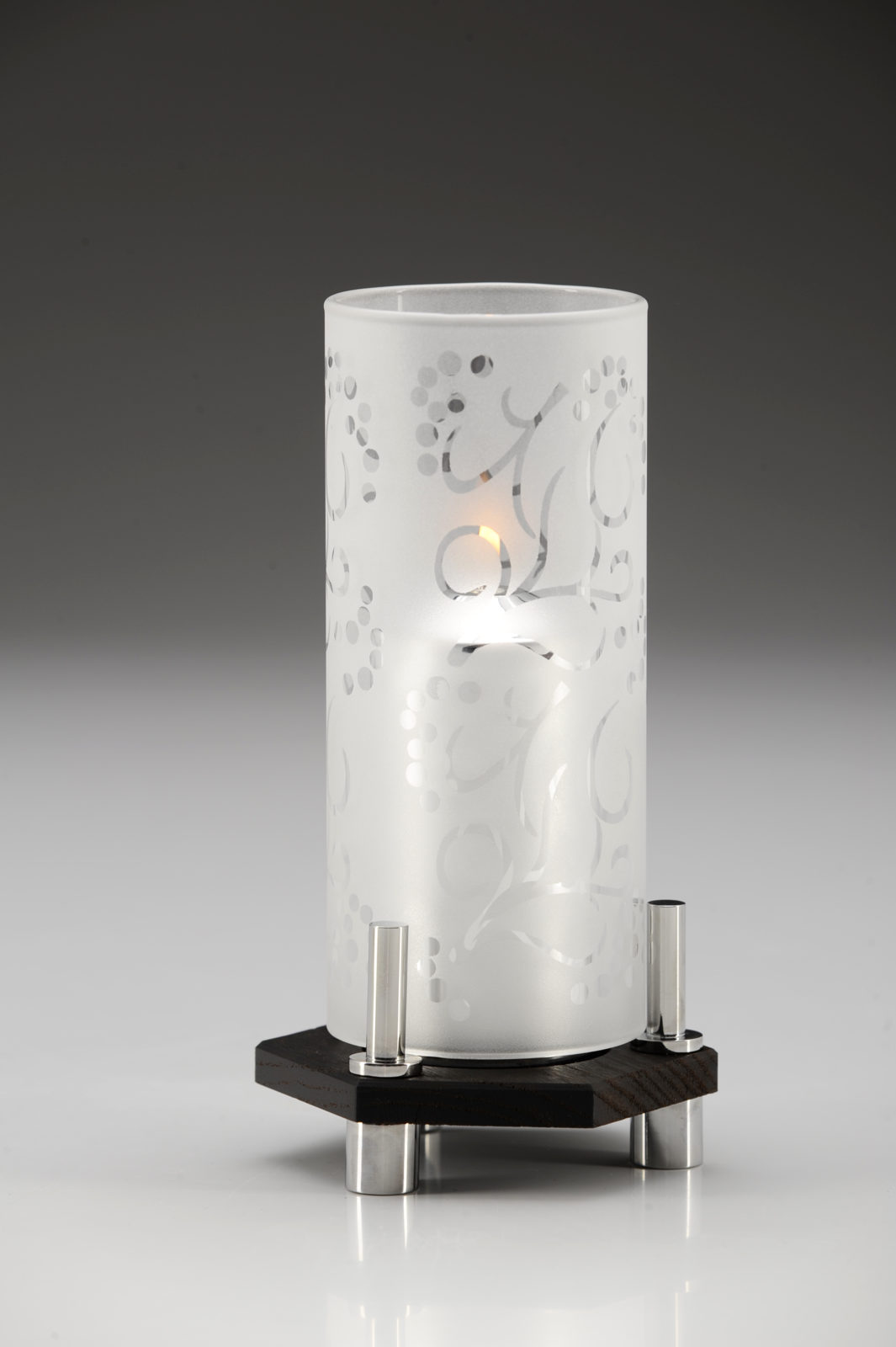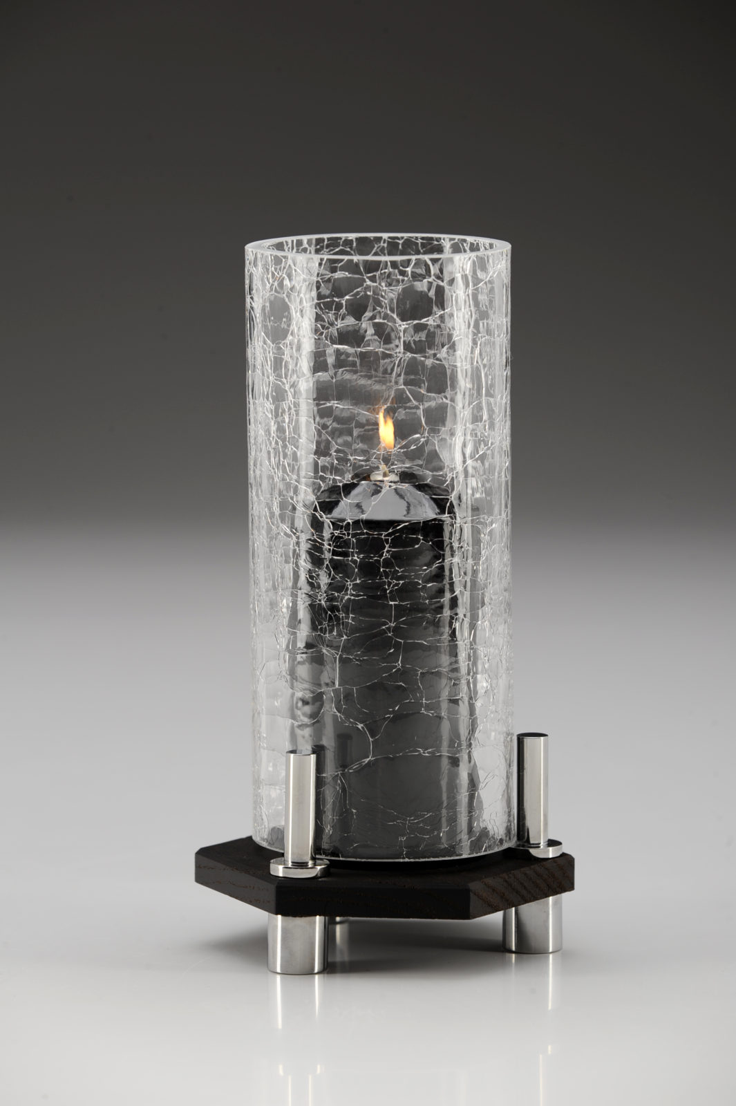 The Premium collection immediately gives a clear and modern feel. The hexagram shaped acryl or ashwood base combined with three chrome stands gives the lamp a modern, yet warm appearance. The ashwood base is finished by hand with wood oil. The height of the lamp is 18 cm.