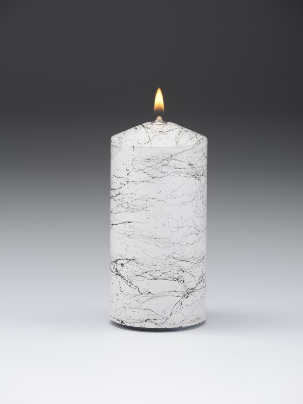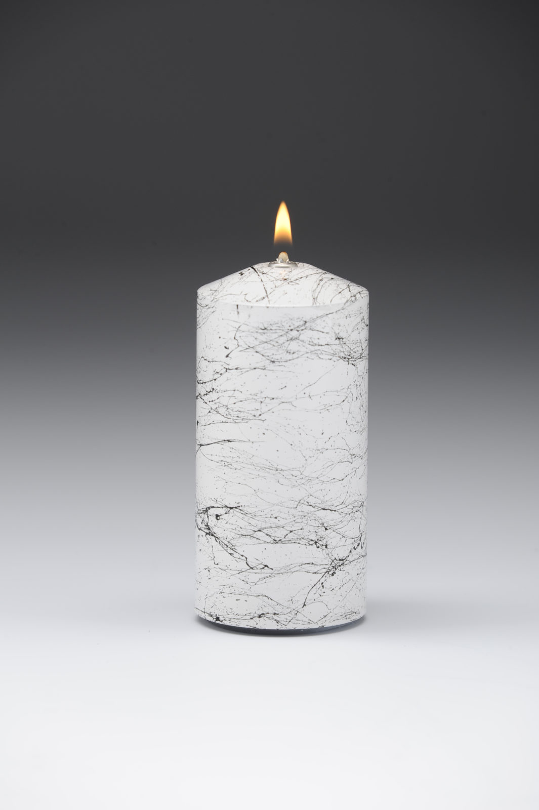 Taiga-kynttilän korkeus on n. 10 cm ja halkaisija n. 5 cm.